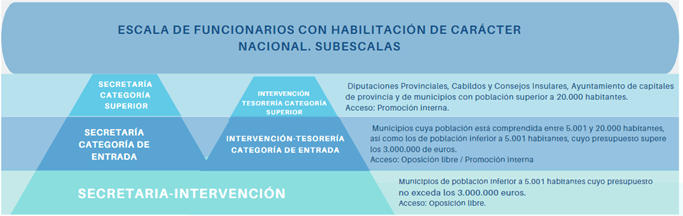 La escala de funcionarios de Administración Local con habilitación de carácter nacional, se divide en las siguientes subescalas: